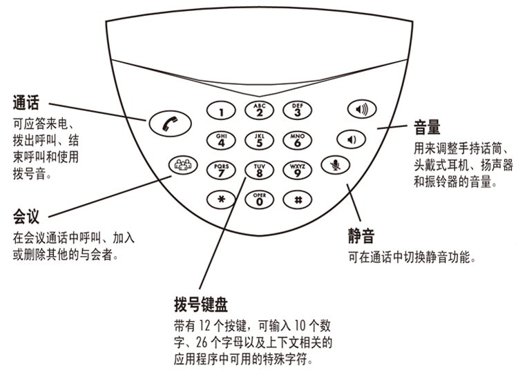 LED指示燈位于SoundStation2的頂部,可顯示會議電話的綠色—正在通話。 閃爍綠色—來電顯示。 紅色—電話靜音。 |