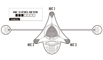 1、按“菜單”按鈕,選擇Admin Setup并按“選擇”按鈕,然后根據需輸入密碼并按ENTER軟件。使用“滾動”按鈕選擇Diagnostics,然后按“選擇”按鈕。 2、使用“滾動”按鈕選擇MicTest,然后按“選擇”按鈕。各麥克風的編號如右圖所示。 3、使用“滾動”按鈕選擇任一麥克風,然后按“選擇”按鈕。 (1)測試的麥克風指示燈將顯示為紅色。 (2)測試的麥克風將以1赫茲的頻率,50%的負載循環進行采樣。 (3)顯示屏上會顯示一個指示器,可模擬通過測試麥克風接收的相應聲音采樣。 |