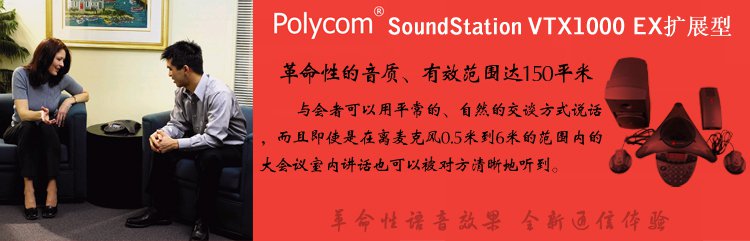 具有Acoustic Clarity技術的Polycom SoundStation VTX1000,在語音會議的技術領域是一次真正的飛躍。是世界上第一個可以自識應每個會議環境的會議電話,為每一個與會者提供了高保真的清晰語音。有了SoundStation VTX1000,與會者可以用平常的、自然的交談方式說話,而且即使是在離麥克風0.5米到6米的范圍內的大會議室內講話也可以被對方清晰地聽到。加上擴展麥克風組成VTX 1000 EX型,應用范圍迅速增大,可滿足超大型會議室的應用。 |