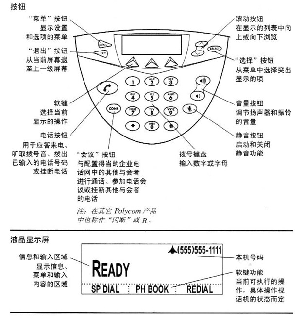 ? 12-鍵電話鍵盤 ? On/off鍵,會議、靜音、音量調節,菜單, 導航鍵 ? 3個由內容而定的鍵,包括重撥、保持 |