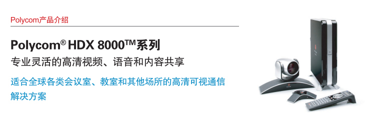 HDX 8000與POLYCOM其他的極致高清解決方案能夠無縫集成,包括POLYCOM RMX 2000多點MCU平臺,polycom rss2000錄播服務器,polycom vmc 1000內容管理和組播解決方案以及POLYCOM readimanage se200系統管理和會議預約應用。